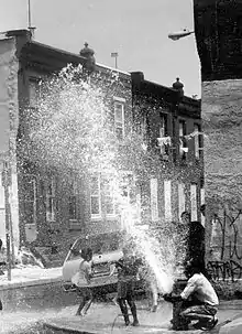 L'ouverture d'une bouche à incendie modérée par un capuchon d'arrosage en sortie est autorisée à New York, si elle est demandée aux pompiers par une personne majeure[2].