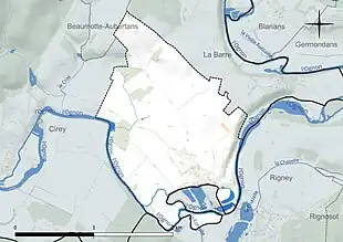 Les communes limitrophes sont Beaumotte-Aubertans, Rigney, La Barre et Cirey.