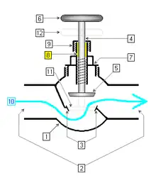 6. Volant ou actionneur (actuator en anglais) : élément extérieur à la vanne stricto sensu, qui permet de manœuvrer celle-ci ;