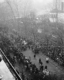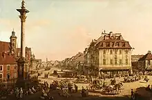 - Le retour des escadrons de l'armée polonaise de Wierzbno montre la vue générale de Faubourg de Cracovie avec le Palais Tyszkiewicz (gauche).