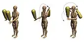 Cet exercice vient à la suite des précédents. À l'origine, il a été pensé pour entraîner les hommes à porter et à manipuler des masses d'armes en temps de guerre. Chaque Pahlevan porte deux masses, une dans chaque main, et pose la partie alourdie sur ses épaules. Au signal du Morshed et en suivant le rythme des percussions, il les fait tourner autour de ces épaules. Les lutteurs les plus habiles font parfois des exercices plus spectaculaires, en agissant comme s'ils jonglaient avec les masses.