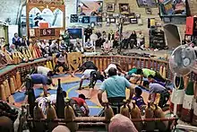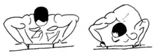 Le pahlavan le plus vieux commence cet exercice au centre du cercle alors que le meneur du groupe conduit les mouvements de "pompes" du groupe.