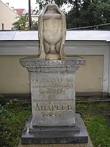 Mort pendant une tournée de son orchestre sur le front du nord de l'Armée rouge lors de la Guerre civile russe, Vassili Andreïev est initialement inhumé au monastère Saint-Alexandre-Nevski de Saint-Pétersbourg. Ses restes sont transférés au cimetière Tikhvine en 1936.