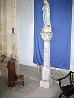- Église Saint-Aignan. L’église actuelle date de 1891, et a été entièrement rebâtie plus au sud de l’ancienne. Contrairement à la tradition qui veut que le chœur des églises soit orienté vers Jérusalem, d’où un axe est-ouest de la nef, l’église Saint-Aignan est orientée approximativement nord-sud. Elle occupe l’emplacement de l’ancien cimetière qui entourait l’église d’origine romane, plusieurs fois remaniée et démolie pour cause de vétusté en 1888. De l’ancienne église subsistent deux bénitiers de fonte datant d’environ 1500, dont l’un semble porter les armoiries de la famille de La Porte, seigneurs de Veaugues, et qui ont peut-être été fabriqués aux forges de la Motte-Cochon (Lugny-Champagne). Dans le chœur de l’église actuelle, on peut également voir une statue de la Vierge posée sur une colonne à chapiteau provenant de l’ancienne église.