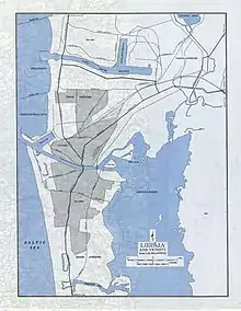 Après la construction de la ligne ferroviaire Liepāja-Romni en 1871, une partie de la ville s'est formée au nord du canal du commerce, sous le nom de Jaunliepāja (Nouveau Liepāja) en face du Vecliepāja (Ancien Liepāja).