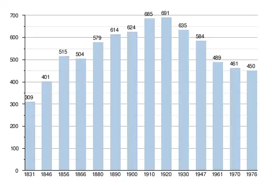 - Sources : INS, Rem. : 1831 jusqu'en 1970 = recensements, 1976 = nombre d'habitants au 31 décembre.