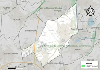 Le territoire communal comprend une ZNIEFF de type 1[Note 1] : le terril et le marais de Wingles. Ce site se localise dans la dépression alluviale du Flot de Wingles, au nord de la ville de Lens, ancienne friche industrielle réaménagée en espace de loisirs, celui-ci est traversé par la RD 165 E et une voie ferrée[10].