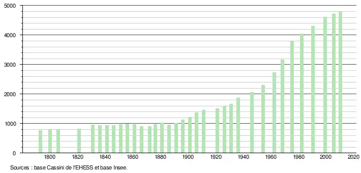 L'évolution du nombre d'habitants est connue à travers les recensements de la population effectués dans la commune depuis 1793. À partir du , les populations légales des communes sont publiées annuellement dans le cadre d'un recensement qui repose désormais sur une collecte d'information annuelle, concernant successivement tous les territoires communaux au cours d'une période de cinq ans.
