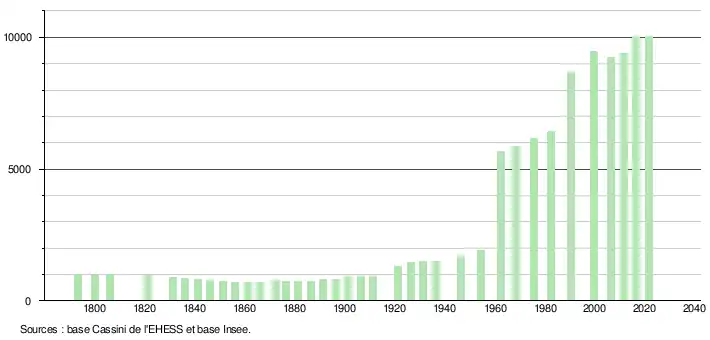 L'évolution du nombre d'habitants est connue à travers les recensements de la population effectués dans la commune depuis 1793. Pour les communes de plus de 10 000 habitants les recensements ont lieu chaque année à la suite d'une enquête par sondage auprès d'un échantillon d'adresses représentant 8 % de leurs logements, contrairement aux autres communes qui ont un recensement réel tous les cinq ans[40],[Note 3].