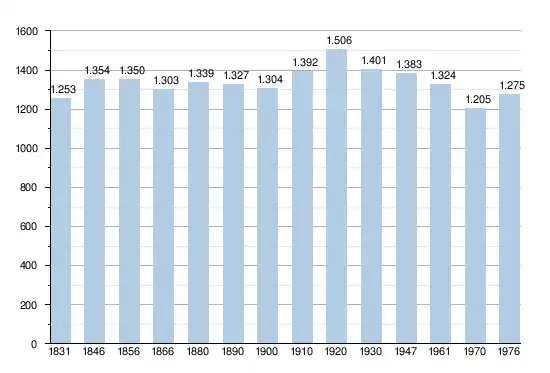 - Sources : INS, Rem. : 1831 jusqu'en 1970 = recensements, 1976 = nombre d'habitants au 31 décembre[2].