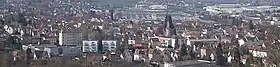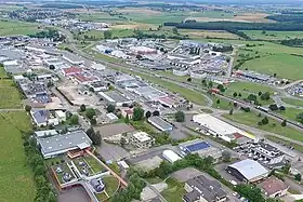 La dernière époque d'urbanisation de Vesoul débute à la fin de la Seconde Guerre mondiale. Après la guerre, l'essor démographique est important, de nouvelles zones s'urbanisent : de larges boulevards et une rocade viennent cerner la ville et des quartiers sortent de terres autour de la colline de la Motte. Principalement dans les années 1960 et 1970, des quartiers majoritairement composés de grands ensembles et de lotissements, sont construits tels que Les Rêpes (1957 à 1961), Le Montmarin (1967 à 1973)[34] et Le Grand Grésil (1973 à 1977[35]. Par la suite, plusieurs zones d'activités sont aménagées à la périphérie de la ville : Espace de la Motte (milieu des années 1970), Technologia (fin des années 1990), Les Haberges (début des années 2000)[A 1],[Carte 5],[33].