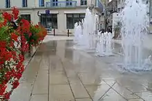 De vastes places complètent le réseau urbain de la ville. L'une des plus importantes et centrales est la place de la République, qui portait auparavant le nom de place Neuve et qui était initialement un jardin clos, puis aménagé en place en 1818. À proximité de la place de la République, se trouvent la place Pierre-Rénet, au sud, et la place des Allées, à l'est, les deux plus vastes places du centre-ville, s'étendant sur plus d'un hectare chacune. La place du 11e Chasseurs, située au centre de l'ancien complexe militaire du 11e Régiment de Chasseurs à Cheval, abrite un monument dédié à la résistance haut-saônoise[36]. Parmi les autres places anciennes, aménagés avant le XIXe siècle, on peut citer la place de l'Église, la place du Grand-Puits et la place du Palais[L 2]. Elles sont généralement accompagnées de fontaines, de statues ou d'autres éléments ornementaux.