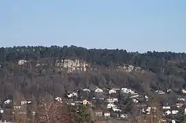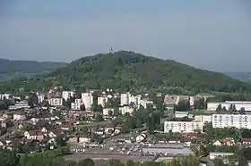 Autour de la ville, la topographie est globalement hétérogène avec au Nord et à l'Ouest de l'agglomération, des zones de plaines et au Sud et à l'Est, des plateaux et coteaux de hauteurs diverses[Carte 3],[8] : le plateau de Cita au sud (372 mètres d'altitude)[9], le camp de César au sud-ouest (386 mètres d'altitude)[P 1] et le plateau du sabot de Frotey à l'est (342 mètres d'altitude)[P 2], trois sites occupés dès la Préhistoire.