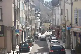 Le centre-ville est traversé selon un axe nord-sud par la rue Paul-Morel, qui représente la voie principale du quartier. Anciennement appelée rue Carnot, la rue Paul-Morel est prolongée au nord par la rue d'Alsace-Lorraine, et au sud par la rue du commandant Girardot et par le boulevard du général de Gaulle, représentant un tracé continu et quasi rectiligne de plus d'un kilomètre. Non loin de cet axe, on retrouve dans le centre ancien quelques exemples de rues particulièrement étroites et pittoresques, caractéristiques des centres historiques, comme la rue de Mailly et la rue du Châtelet. La majorité des rues du centre-ville furent aménagées avant le XVIIIe siècle telles que la rue Saint-Georges et la rue des Boucheries. D'autres rues anciennes peuvent faire l'objet d'une mention comme la rue Baron-Bouvier, la rue Georges-Genoux et la rue Gevrey[L 1]. La rue du Breuil, quant à elle, est la seule rue piétonne du centre-ville.