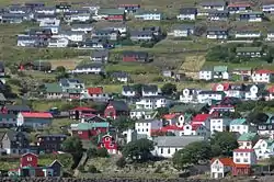 Localisation de la commune (en vert) avec celle de ville de Vestmanna (en rouge) | |||