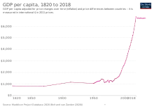 La libéralisation de l'économie permit de redresser l'économie après la fin de l'embargo américain (1994), plus précisément depuis la fin des années 1980[49]. Depuis les années 2000, on parle même d'un décollage économique puisque le taux de croissance réel du PIB passe de 4,7 % en 2001 à 7,8 % en 2007, même s'il est redescendu à 6,3 % en 2008 et 5,3 % en 2009 à cause de la crise économique[50]. Toutefois, il est remonté en 2010 à 6,8 %[50].