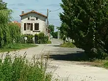 Voie entre Sainte-Sévère et Cherves-Richemont, et la D 55 qui diverge à droite.