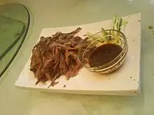 La minorité buyei consomme également de la viande de chien[18] dont la fondue de chien de Huajiang[19], bourg du Xian autonome buyei et miao de Guanling.