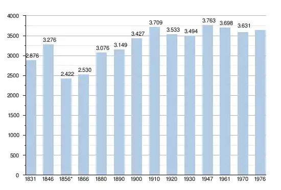 - Source: DGS , de 1831 à 1981=recensements population; à partir de 1990 = nombre d'habitants chaque 1 janvier