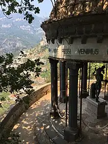 Beckett meurt à Londres en 1917 et sa dépouille est amenée à la Villa Cimbrone pour être enterré au pied du Temple de Bacchus dans les jardins[1]; et quelques vers de Catulle tirés du Ad Sirmium insulam (Poésie XXXI) sont inscrits sur la frise :[réf. souhaitée].