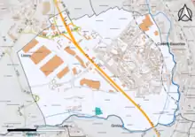 Au nord-ouest, le collège et l'aire de service de l'A6 à l'arrière-plan.