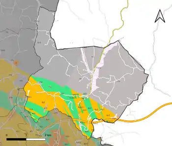 L'occupation des sols de la commune, telle qu'elle ressort de la base de données européenne d’occupation biophysique des sols Corine Land Cover (CLC), est marquée par l'importance des forêts et milieux semi-naturels (57,6 % en 2018), une proportion sensiblement équivalente à celle de 1990 (58,5 %). La répartition détaillée en 2018 est la suivante : forêts (57,6 %), prairies (29,5 %), zones agricoles hétérogènes (12,9 %)[32]. L'évolution de l’occupation des sols de la commune et de ses infrastructures peut être observée sur les différentes représentations cartographiques du territoire : la carte de Cassini (XVIIIe siècle), la carte d'état-major (1820-1866) et les cartes ou photos aériennes de l'IGN pour la période actuelle (1950 à aujourd'hui)[Carte 3].