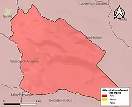Le retrait-gonflement des sols argileux est susceptible d'engendrer des dommages importants aux bâtiments en cas d’alternance de périodes de sécheresse et de pluie. La totalité de la commune est en aléa moyen ou fort (75,2 % au niveau départemental et 48,5 % au niveau national). Sur les 84 bâtiments dénombrés sur la commune en 2019, 84 sont en aléa moyen ou fort, soit 100 %, à comparer aux 94 % au niveau départemental et 54 % au niveau national. Une cartographie de l'exposition du territoire national au retrait gonflement des sols argileux est disponible sur le site du BRGM[21],[Carte 3].