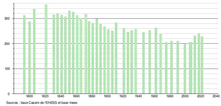 - Fiches Insee - Populations légales de la commune pour les années 2006, 2007, 2008, 2009, 2010, 2011, 2012, 2013, 2014, 2015, 2016, 2017, 2018, 2019, 2020 et 2021.