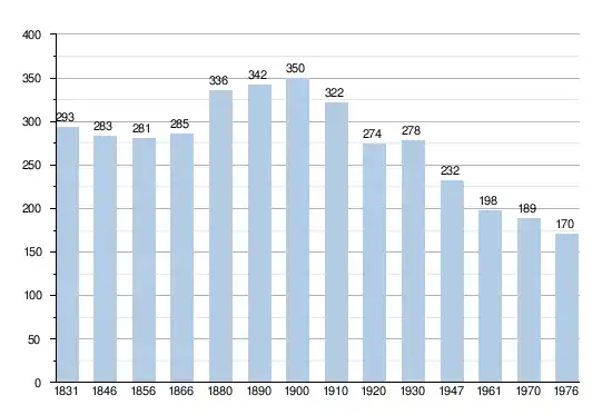 - Source: DGS, 1831 à 1970=recensements population, 1976= habitants au 31 décembre