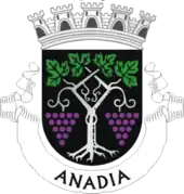 ![]() | Anadia | De sable au pied de vigne arraché d'argent portant deux grappes de pourpre, l'une à dextre et l'autre à senestre, et quatre feuilles de sinople alignées en chef. | |