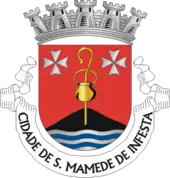 ![]() | Alcobaça | De gueules, au chef d'azur chargé de trois fleurs de lys d'or, et à la tour crénelée d'or et ouverte d'une porte et de quatre fenêtres de sable, posée sur une mer d'argent mouvant de la pointe à deux faces ondées d'azur, la tour accompagnée à dextre et à senestre de deux croissants d'or les pointes tournées vers le chef. | |