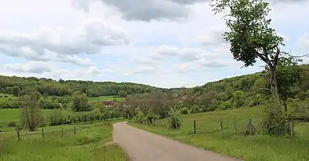 L'occupation des sols de la commune, telle qu'elle ressort de la base de données européenne d’occupation biophysique des sols Corine Land Cover (CLC), est marquée par l'importance des territoires agricoles (75 % en 2018), une proportion sensiblement équivalente à celle de 1990 (75,5 %). La répartition détaillée en 2018 est la suivante : terres arables (33,2 %), prairies (32,6 %), forêts (24,9 %), zones agricoles hétérogènes (9,2 %)[13]. L'évolution de l’occupation des sols de la commune et de ses infrastructures peut être observée sur les différentes représentations cartographiques du territoire : la carte de Cassini (XVIIIe siècle), la carte d'état-major (1820-1866) et les cartes ou photos aériennes de l'IGN pour la période actuelle (1950 à aujourd'hui)[Carte 1].