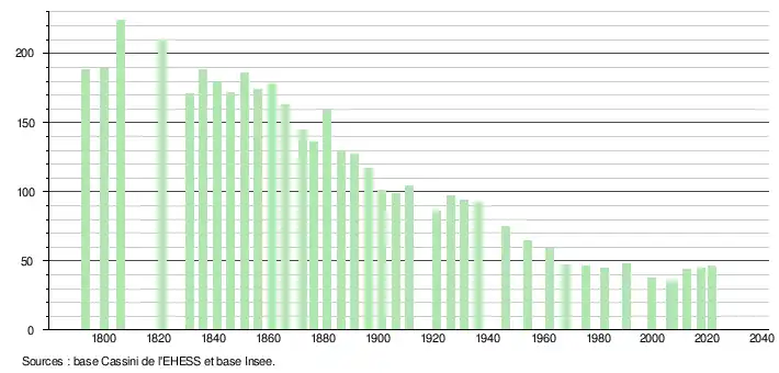 (Sources : Ldh/EHESS/Cassini jusqu'en 1999[16] puis Insee à partir de 2006[17].)