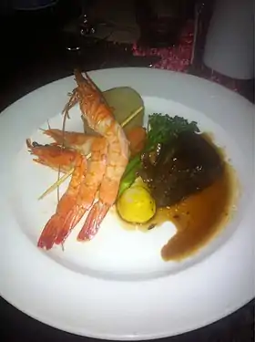 | San Francisco | ![]() | Pêche du jour (crustacés, fruits de mer et poissons) avec tomates fraîches et vin | Entrée ou plat principal | Vin blanc | Bordeaux blanc, riesling d'Alsace, chianti, montepulciano, bandol, côtes-de-provence | Cuisine californienne | |
