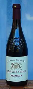 Un vin primeur est un vin mis en vente presque immédiatement après la récolte, généralement deux mois, dès que la fermentation a eu lieu. On l'appelle aussi « vin nouveau », « vin jeune » ou « vin de l'année ». Il est tout à fait l'inverse de ce qu'est un vin de garde. De nombreux vignerons utilisent pour l'obtention de leurs vins primeurs la méthode de la macération carbonique, l'exemple le plus connu étant le beaujolais nouveau dont le succès a incité d'autres régions à mettre en œuvre ce type de vins[5].