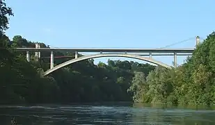 - Ce pont franchissant l'Isère a été réalisé en 1986 par l'entreprise « Dragages et Travaux Publics ». Il a été le premier pont en arc en béton armé construit en France suivant la technique de l'encorbellement à partir des massifs de rive avec haubanage provisoire de l'arc. Le tablier en béton précontraint a été mis en place en utilisant la méthode du poussage. Le pont de Trellins a été construit pour remplacer un pont suspendu datant de 1905.