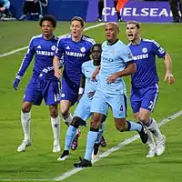 Lors de la saison 2011-2012, il est promu capitaine de l'équipe à la place de Carlos Tévez[16]. Le , Kompany marque le but de la victoire face à Manchester United sur un corner tiré par David Silva à la 45e minute de jeu et offre à City une très bonne occasion de gagner le titre.