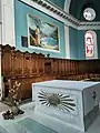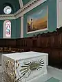 L'ancienne église du village construite en 998 a été volontairement rasée à partir du 24 juin 1834 du fait de sa vétusté. La coquille Saint-Jacques pourrait être un élément de cette église, conservé et réintégré en témoignage de ce passé perdu. Toutefois, aucun autre élément significatif dans la commune ne vient appuyer cet état de fait, ce qui renforce un peu plus le mystère autour de la coquille Saint-Jacques de Violay.