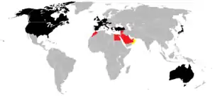 - Aux Émirats arabes unis : Dubaï, Abou Dabi franchises à UAE of Broadway Trading (M. Hassan Daher).