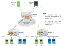 La communication entre routeurs de VRF identiques (pour former un VPN MPLS), voire entre VRF totalement distinctes, peut être implémentée de deux façons: