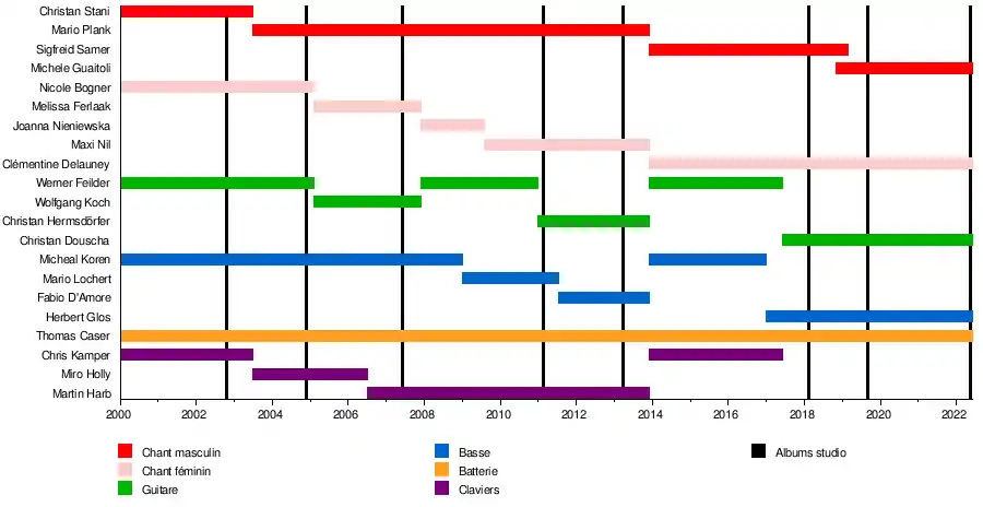 - Werner Fiedler - guitares (2000-2005, 2007-2013, 2014-2017)