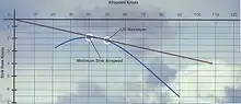 La figure ci-contre représente la polaire des vitesses d'un planeur. L'abscisse correspond à la vitesse-air de l'aéronef et l'ordonnée correspond à la vitesse de chute. Le plané sera le meilleur possible lorsque l'angle de plané sera le plus petit possible ; angle minimal obtenu lorsque la droite d'origine O est tangente à la courbe de la polaire[1],[2].