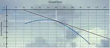 De la même manière si le planeur rencontre un vent de face, l'origine de la courbe tangente sera déplacée vers la droite de la valeur de la vitesse du vent (voir figure).