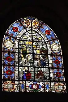 Le vitrail no 2 dont le panneau central représentant l'Annonciation a été offert par maître Audiger. La restaurations importantes et bordure réalisées par Prosper Lafaye en 1860 (inscriptions) ; autre restauration en 1925.