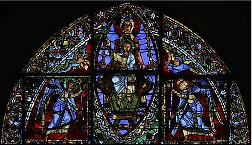 La verrière représente l'enfance et une partie de la vie publique du Christ[1].