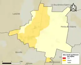 Le retrait-gonflement des sols argileux est susceptible d'engendrer des dommages importants aux bâtiments en cas d’alternance de périodes de sécheresse et de pluie. 37,2 % de la superficie communale est en aléa moyen ou fort (52,8 % au niveau départemental et 48,5 % au niveau national). Sur les 142 bâtiments dénombrés sur la commune en 2019, 31 sont en aléa moyen ou fort, soit 22 %, à comparer aux 70 % au niveau départemental et 54 % au niveau national. Une cartographie de l'exposition du territoire national au retrait gonflement des sols argileux est disponible sur le site du BRGM[16],[Carte 2].