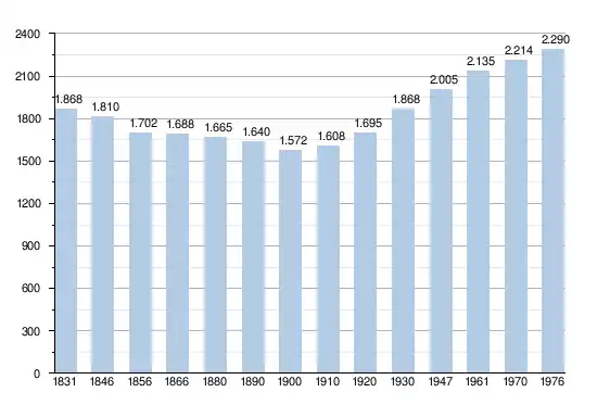 - Sources : INS, Rem. : 1831 jusqu'en 1970 = recensements, 1976 = nombre d'habitants au 31 décembre[2].