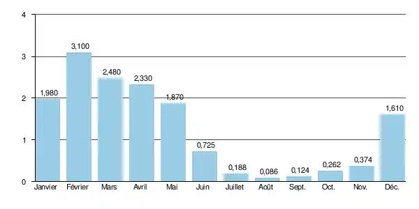 Le VCN3 peut chuter jusque 0,003 m3/s, en cas de période quinquennale sèche, soit trois litres par seconde, ce qui doit être considéré comme très sévère, le cours d'eau étant alors réduit à quelques filets.