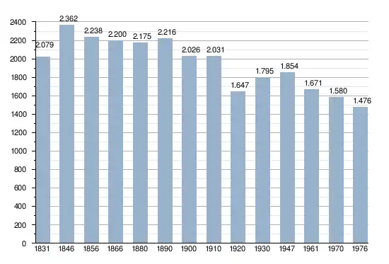• Sources : INS, Rem. : 1831 jusqu'en 1970 = recensements, 1976 = nombre d'habitants au 31 décembre[2].