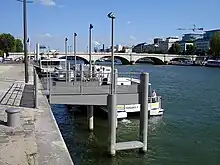 La Communauté d'agglomération Plaine Commune a également proposé la création d'un service en aval de cette écluse, de manière à relier Saint-Denis (Seine-Saint-Denis) à La Défense (Hauts-de-Seine)[32]. Lors de son conseil municipal du , la municipalité de Clichy a demandé au STIF la mise à l'étude dans les meilleurs délais d'une navette fluviale à l'image de Voguéo, entre Suresnes et Clichy et les villes au-delà, via La Défense. Cette nouvelle ligne pourrait permettre de réduire la saturation de la ligne 13 du métro de Paris[33].